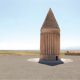 The Radkan Tower, whose construction dates back to over 750 years ago, is located at 3 kilometers east of the Radkan village, in Tus region, at 78 kilometers west of Mashhad, Iran. This elegant 26-meter brick tower is erected on dodecagon walls mounted by 36 pilasters. The individual pilasters are joined with miniature trefoil arches at the top, above which is a partially ruined frieze of Kufic inscriptions. The tower is crowned by a conical roof covering the collapsed hemispherical internal dome. The interior is enclosed by octagonal walls. A spiraling staircase encased within the monument's walls gives access to the inner dome, of which only the base remains. The tower has two doors facing southeast and northwest, and a number of apertures in different sizes in the walls and on the roof. There are beautiful ecolodges and peaceful resorts in the Radkan village to accommodate researchers and visitors.